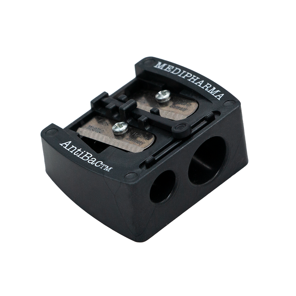 Our KUM® Medipharma cosmetic sharpeners with anitbacterial material are produced from an advanced Antibac material based on polystyrene enriched with silver ions. The integrated silver ion technology is designed to inhibit bacterial growth on the surface of the sharpener, helping to reduce contamination during everyday use.